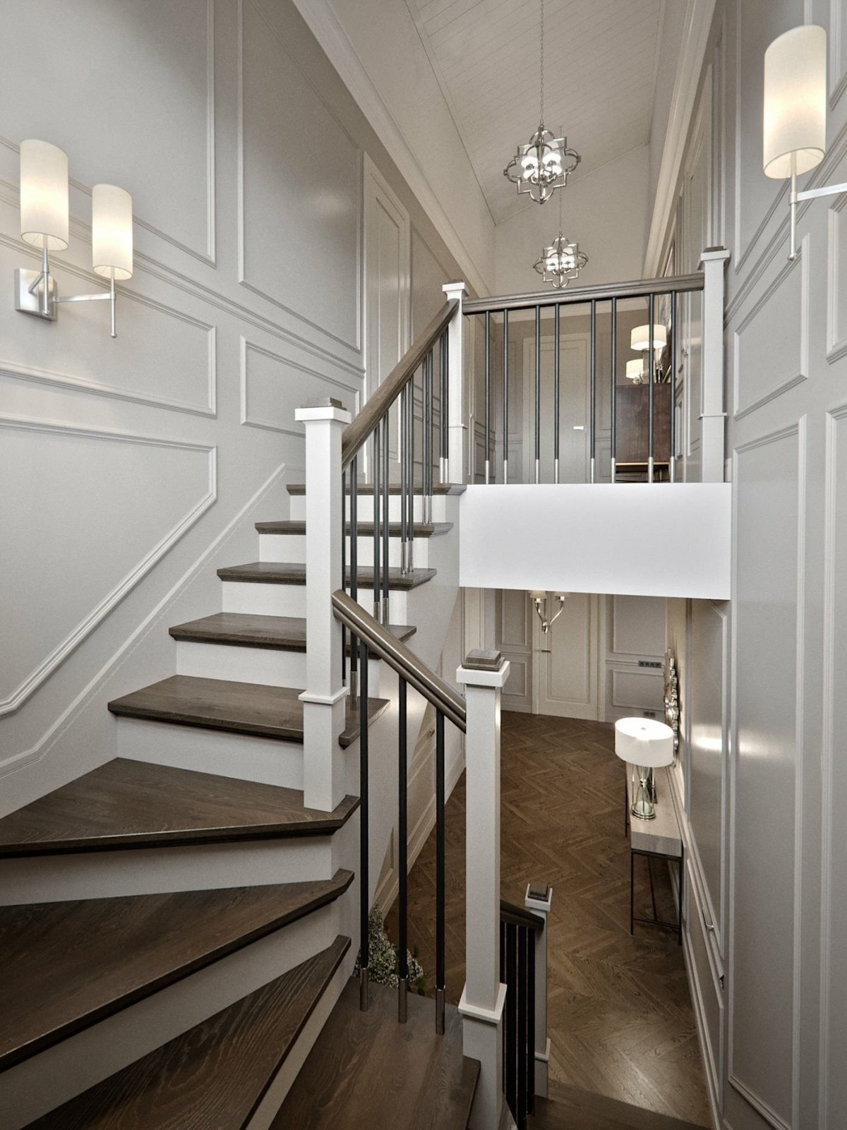 4. Отделка лестничного холла в частном доме
