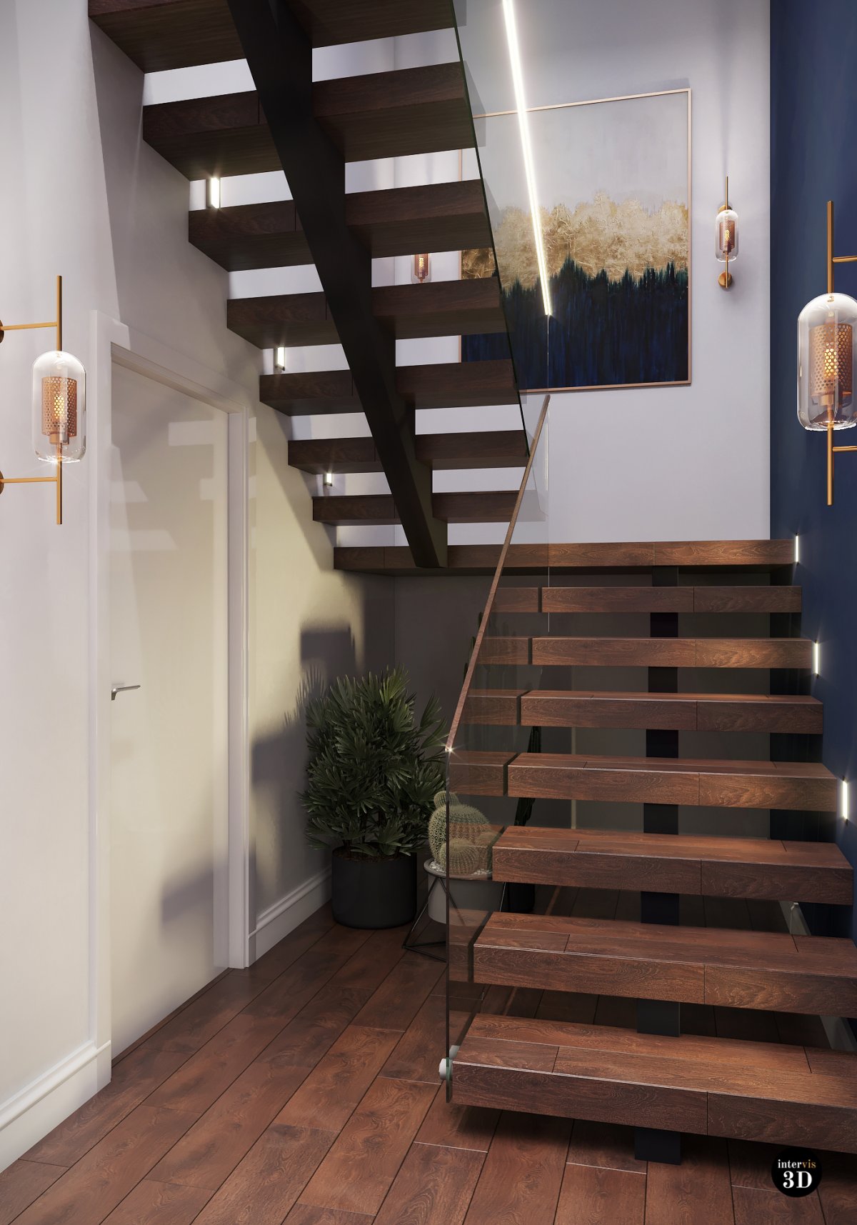 47. Лестничный марш в частном доме дизайнерские решения