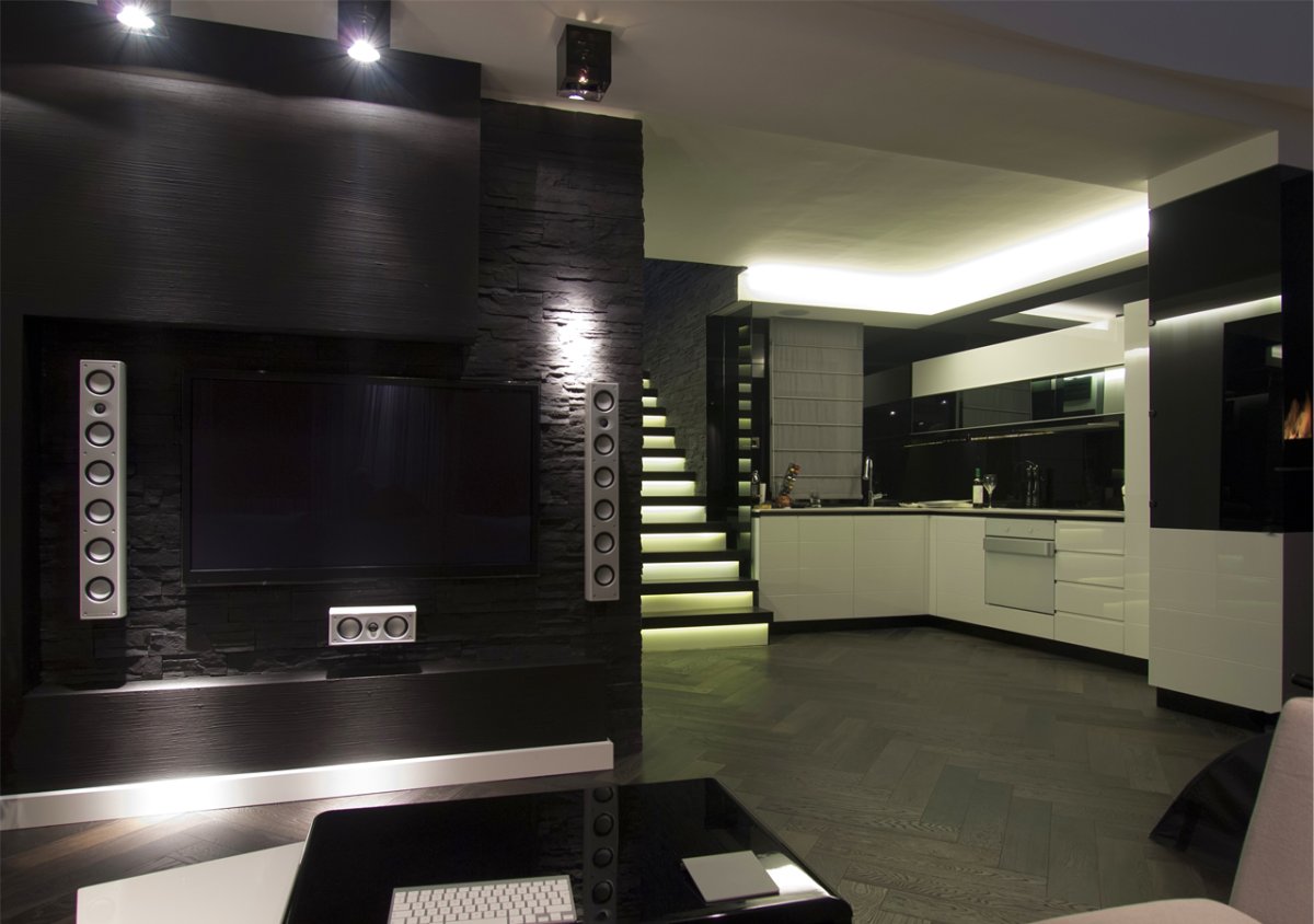 53. Интерьер трехкомнатной квартиры в стиле хайтек