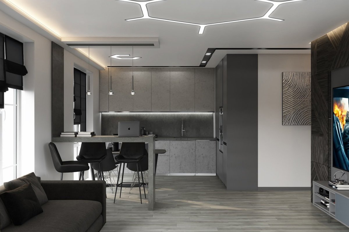 34. Дизайн двухкомнатной квартиры в стиле Хай тек