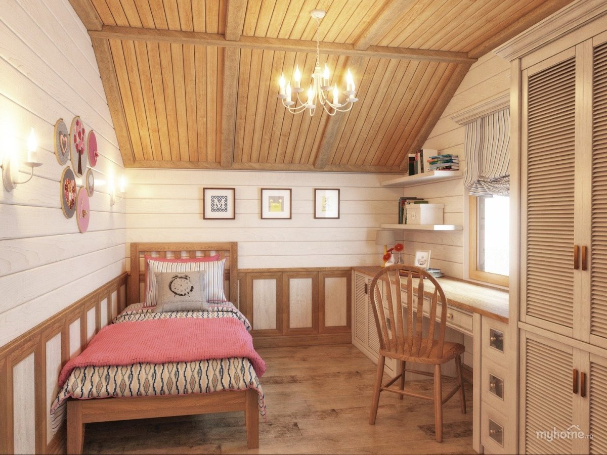10. Мансарда в деревянном доме вагонка штиль