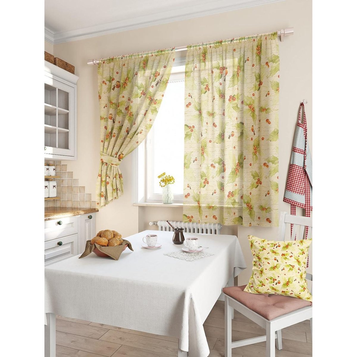 44. Штора для кухни ТОМДОМ Чампи 170х150см,белый, красный