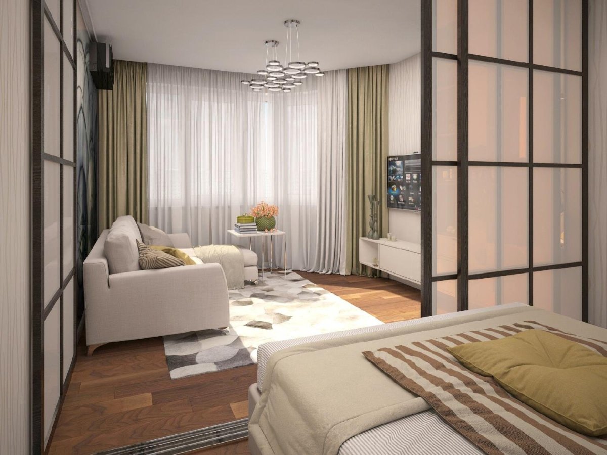 22. Спальня-гостиная 20 кв.м прямоугольная с балконом