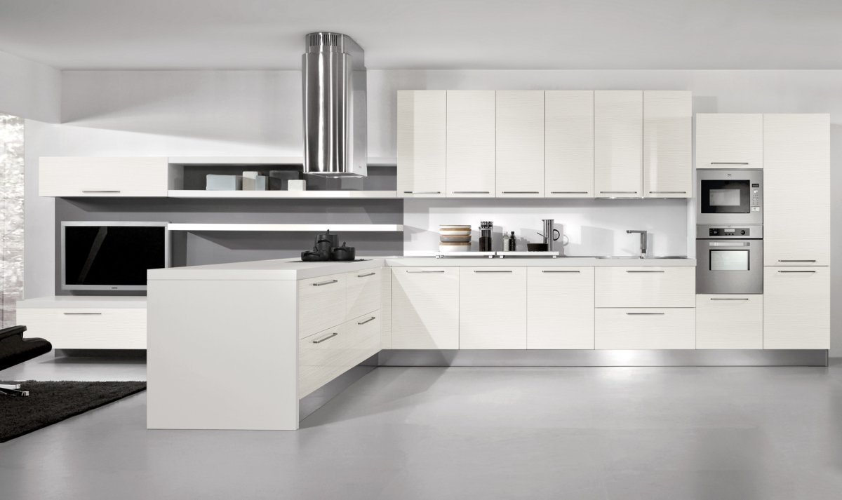 41. Кухонный хайтек мебель белый цвет