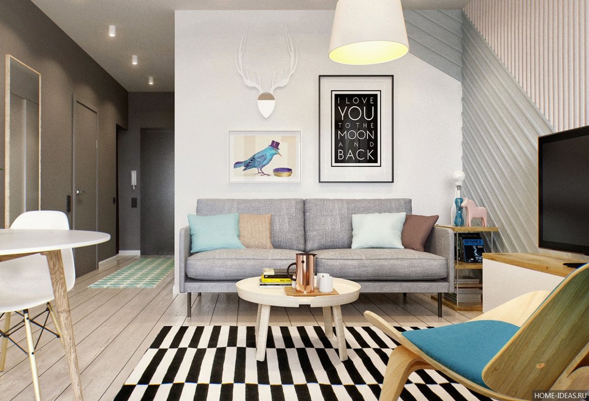 64. Гостиная Скандинавский стиль малогабаритка