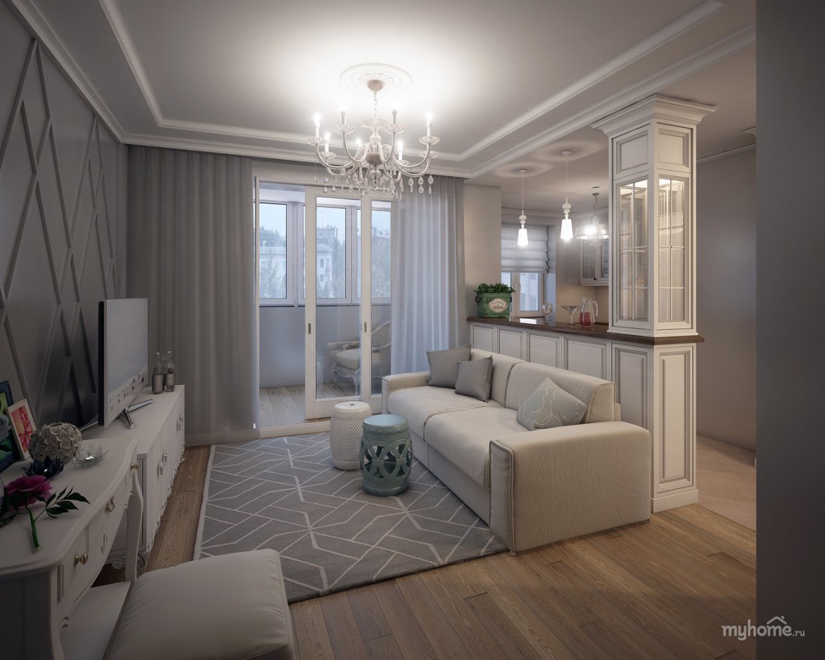68. Гостиная в хрущевке современная классика