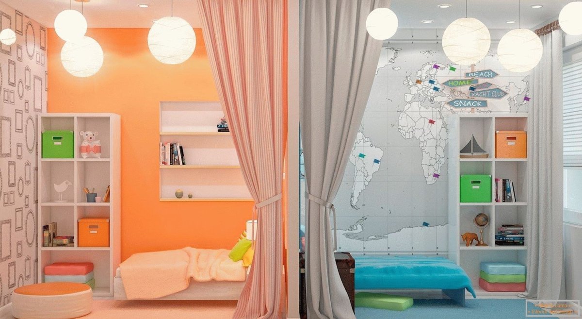 15. Зонирование комнаты для разнополых детей