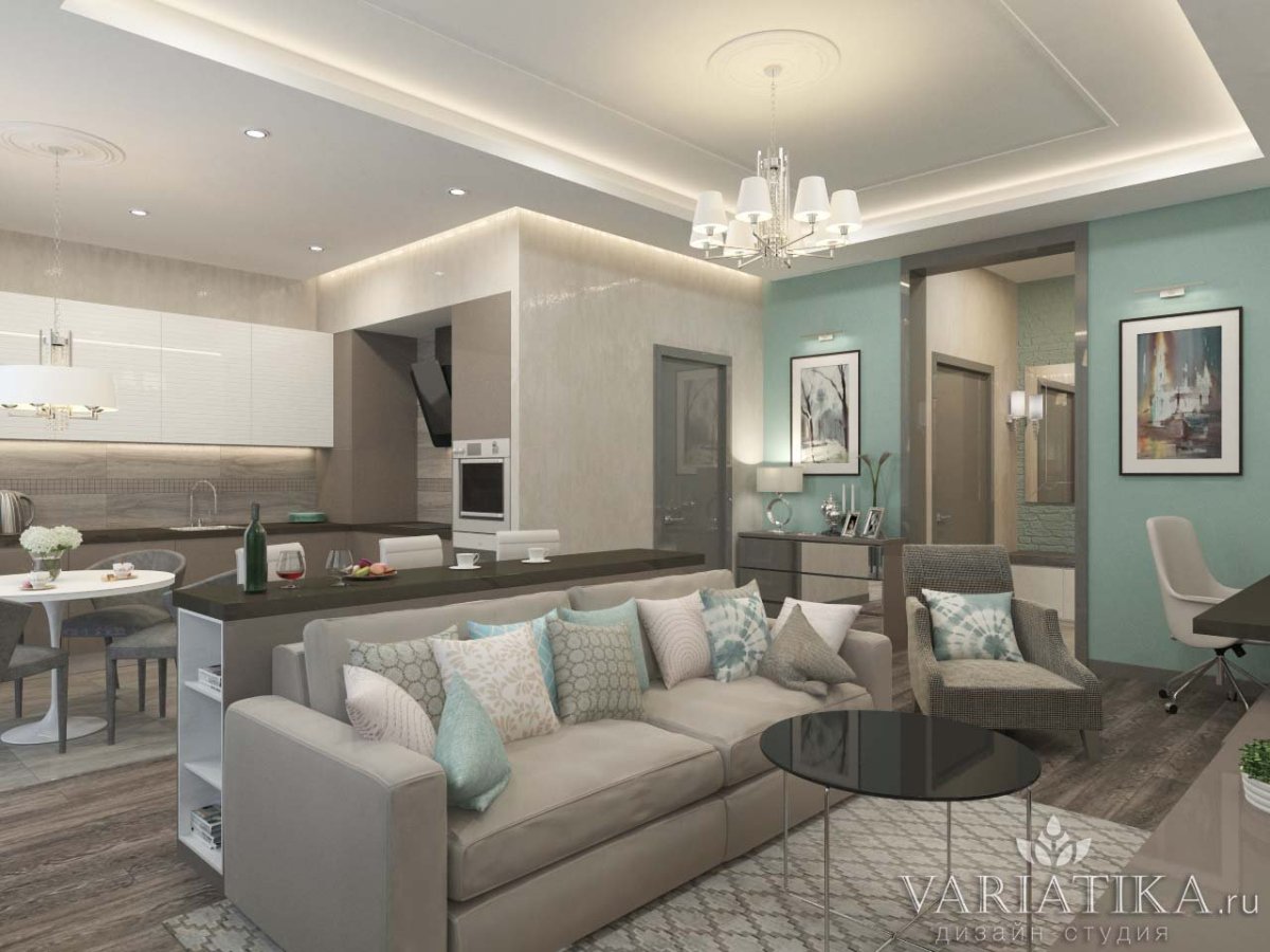 8. Кухня гостиная в холодных тонах