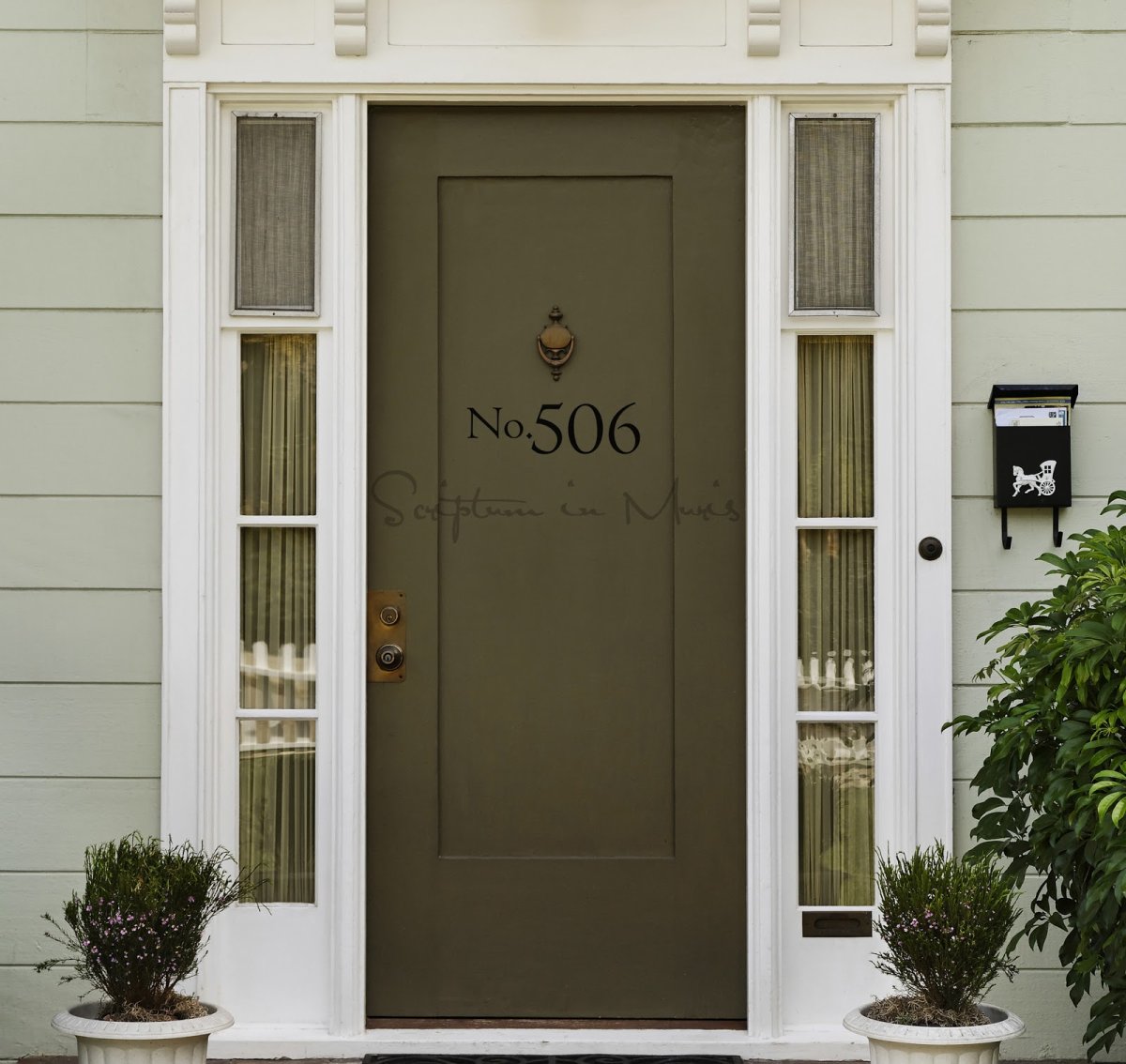56. Входная зеленая дверь в дом в американском стиле