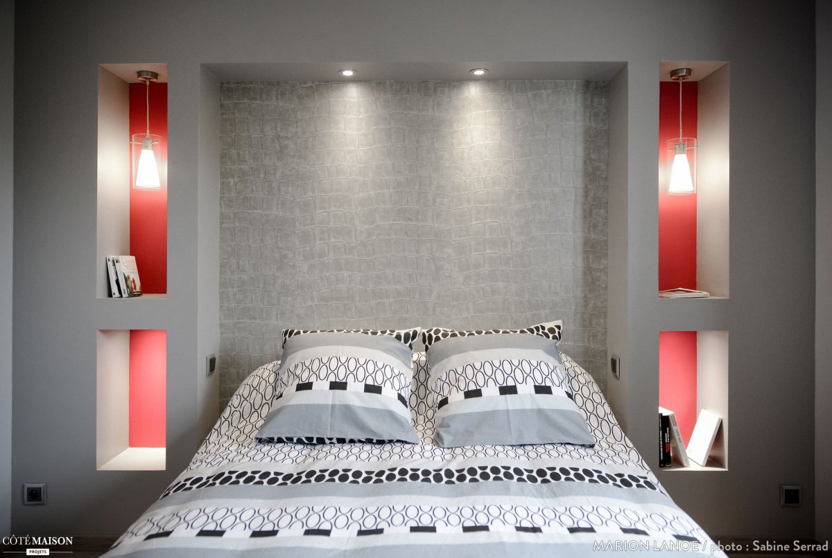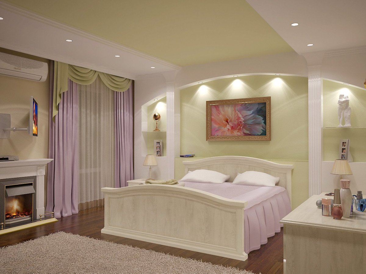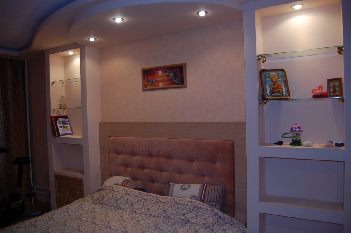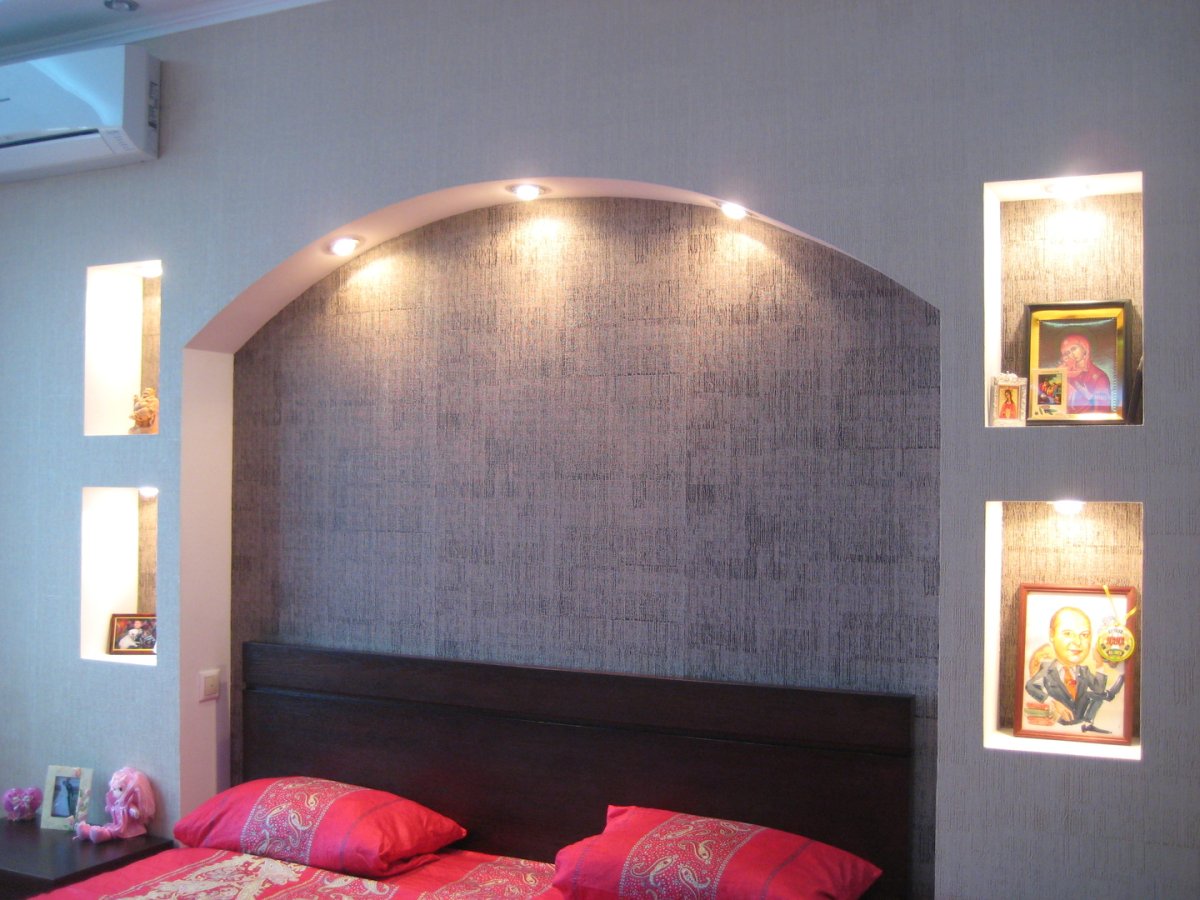 Фото: Изголовье кровати из гипсокартона с подсветкой