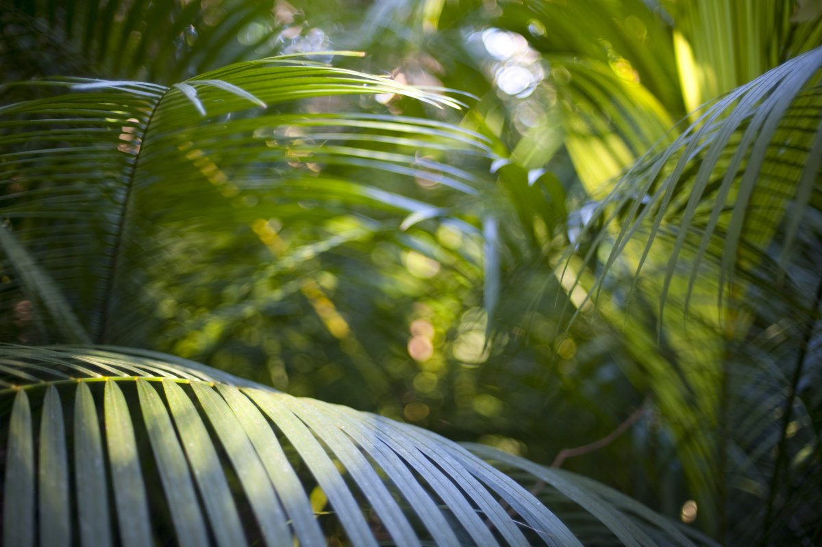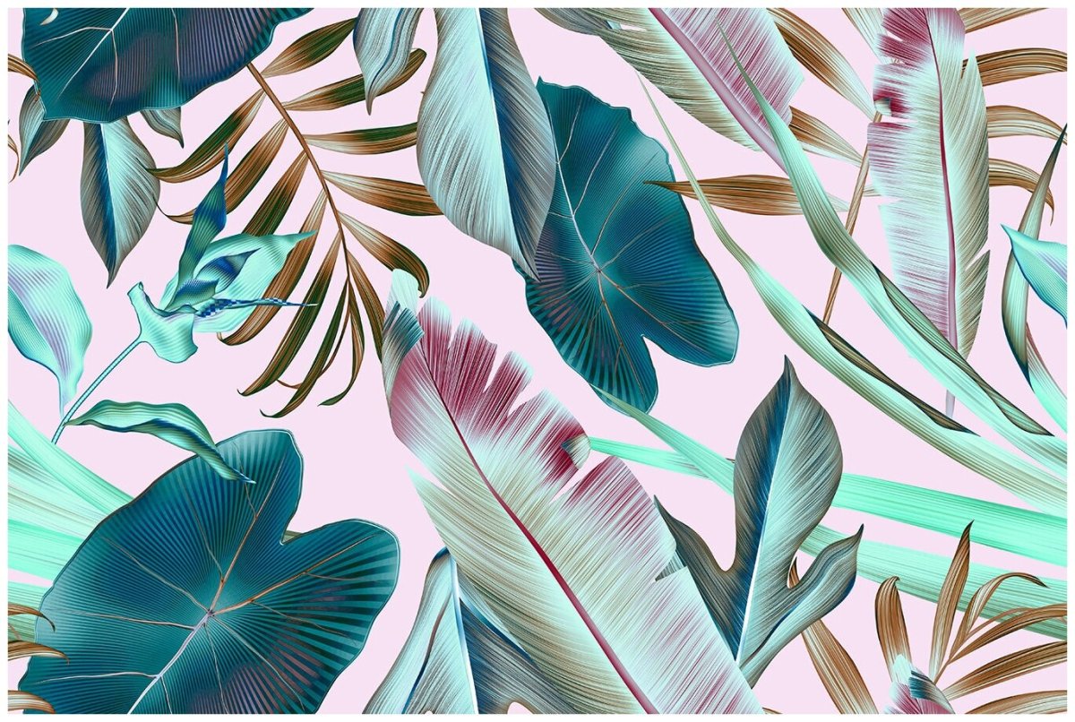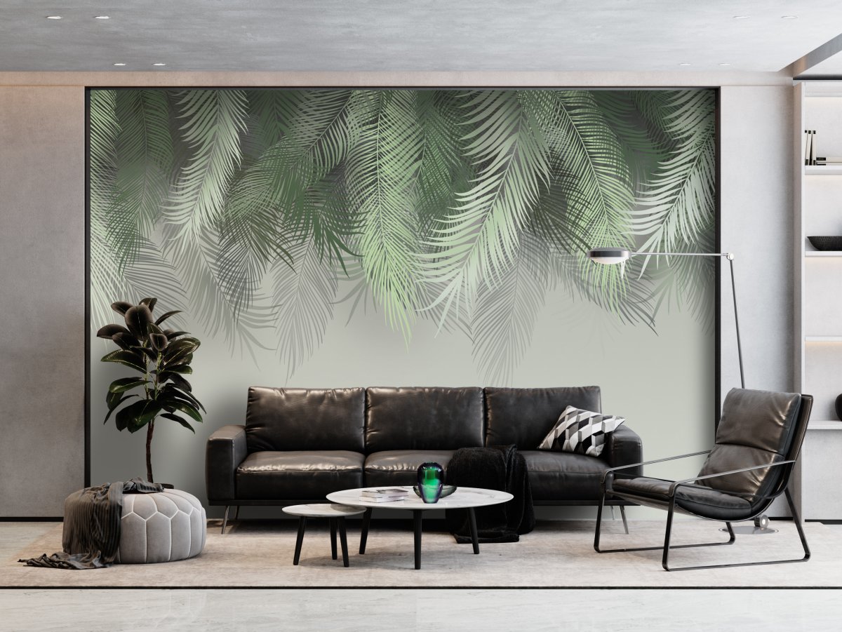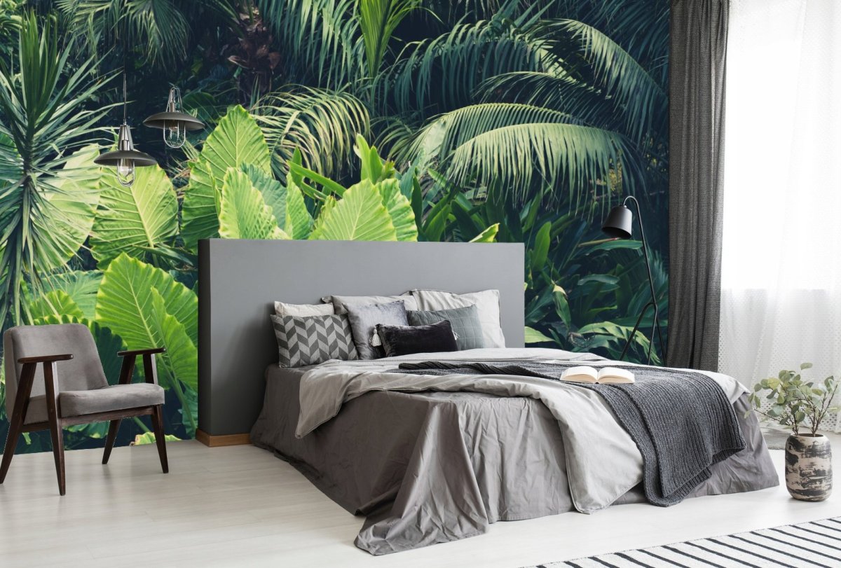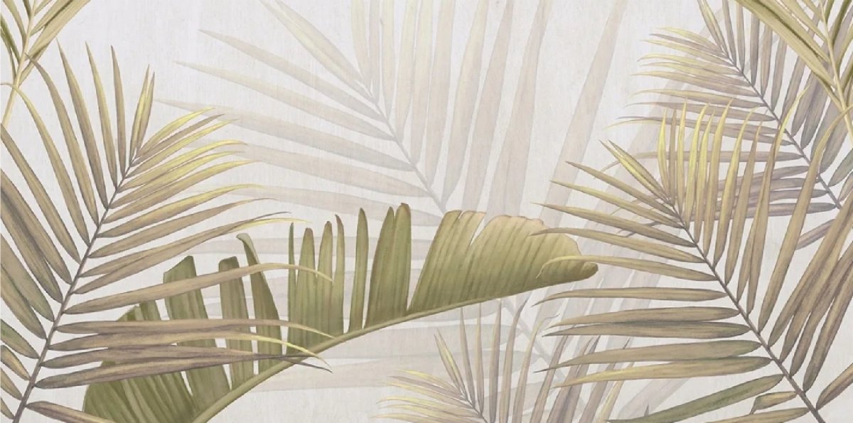 4. Обои для спальни комбинированные с пальмовыми листьями