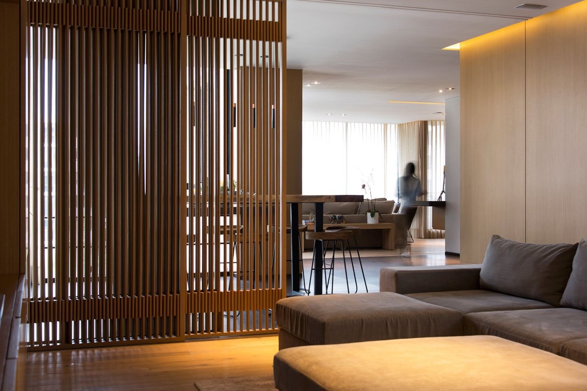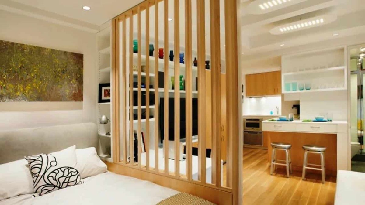 31. Раздвижная деревянная перегородка для зонирования комнаты