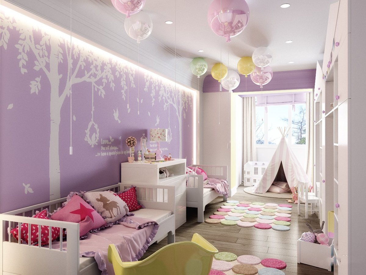 28. Интерьер детской спальни 10 кв.м для 2 девочек