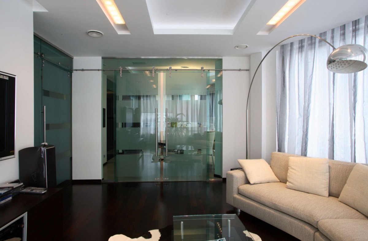 9. Стеклянная перегородка-дверь в гостиную