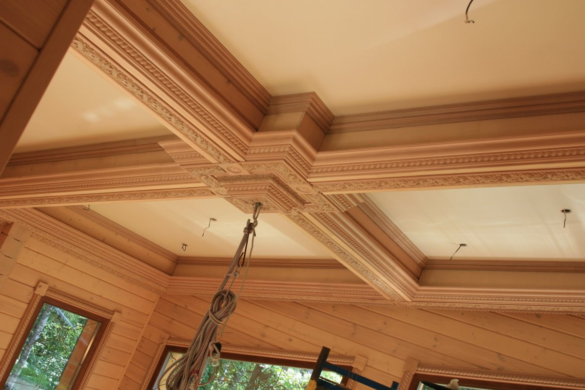 Фото: Потолочные плинтуса под деревянный потолок