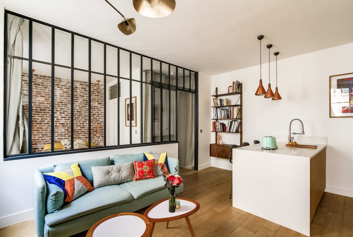 67. Стеклянные перегородки для зонирования пространства в комнате