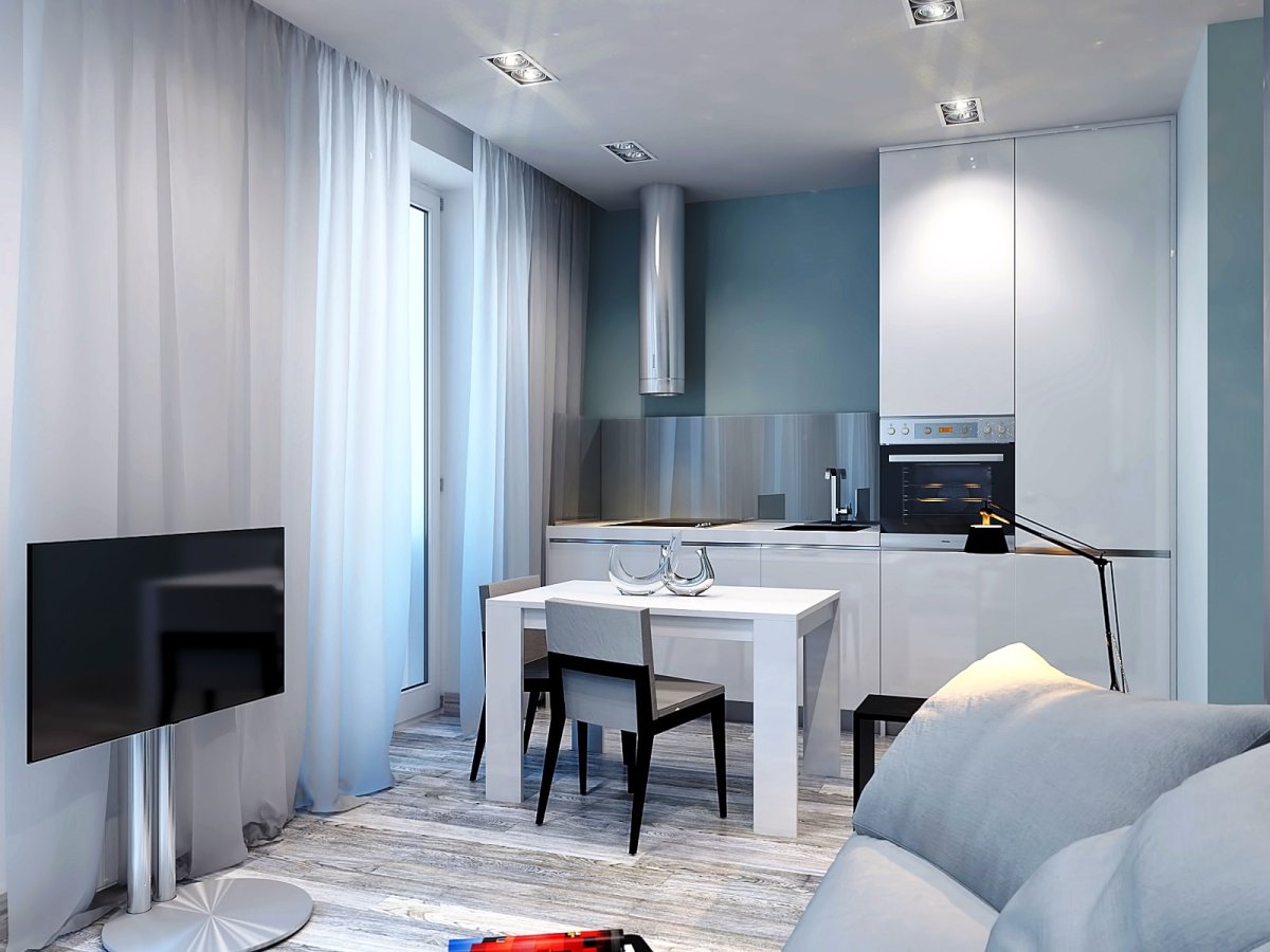48. Кухня студия с гостиной
