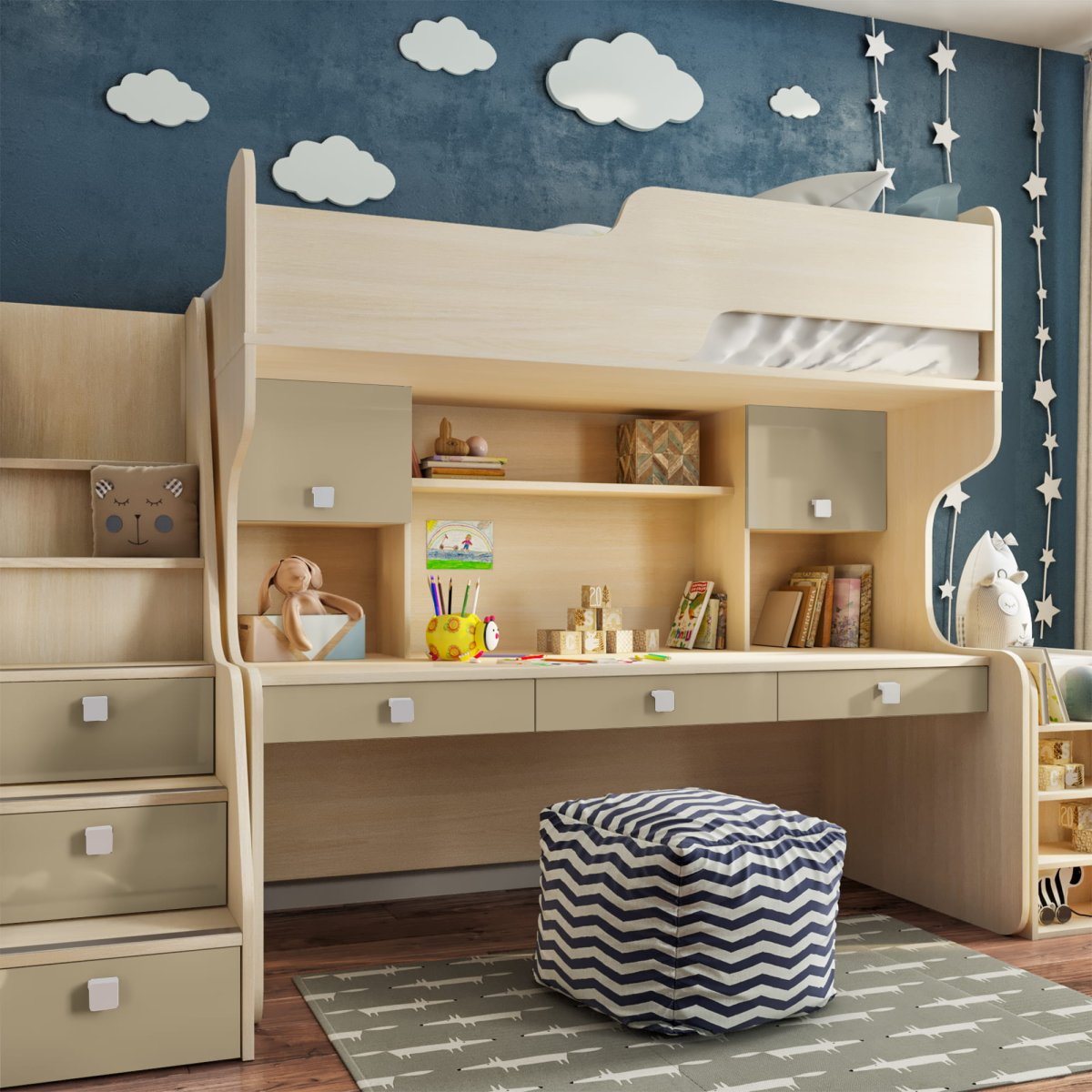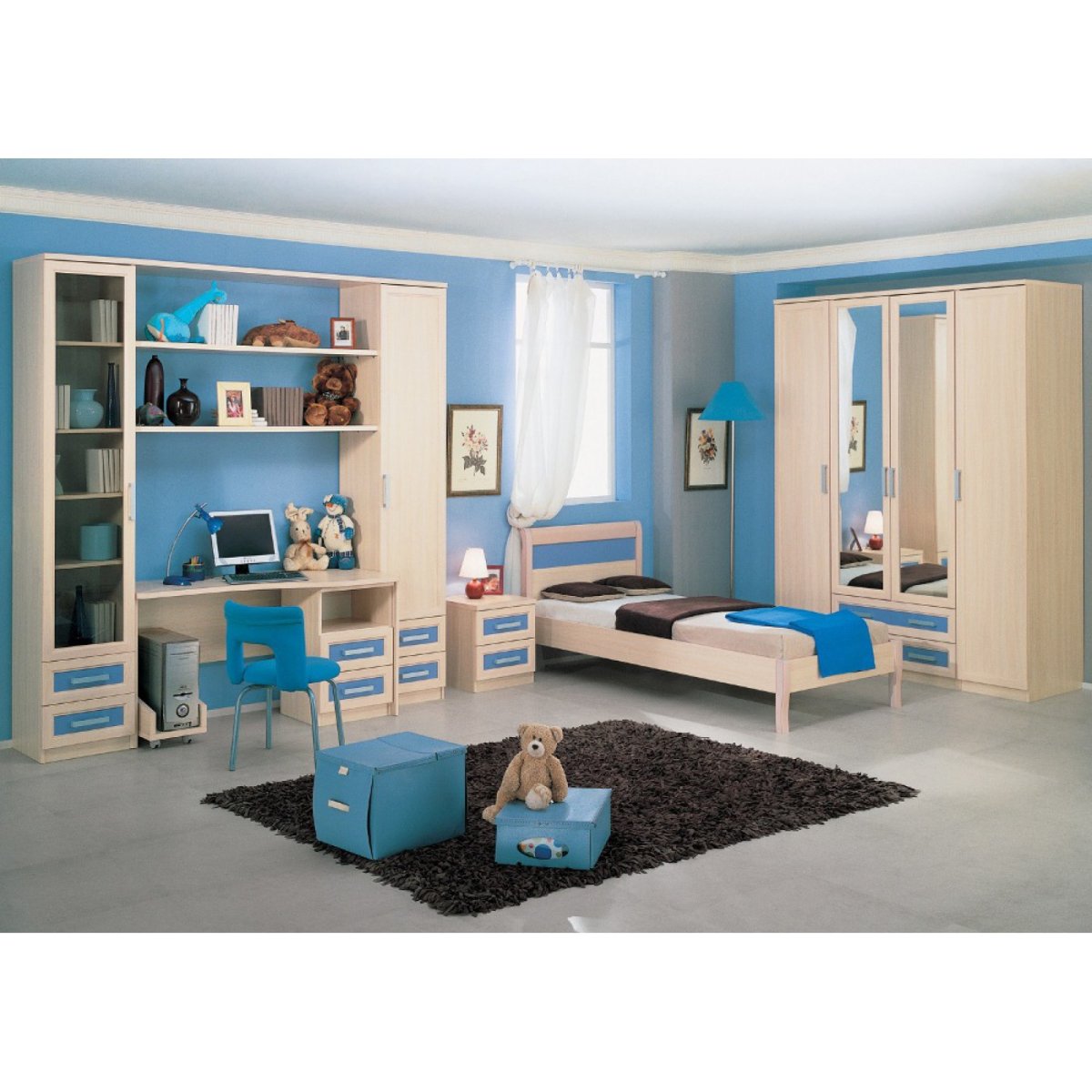 39. Мебель для детской комнаты с голубыми вставками