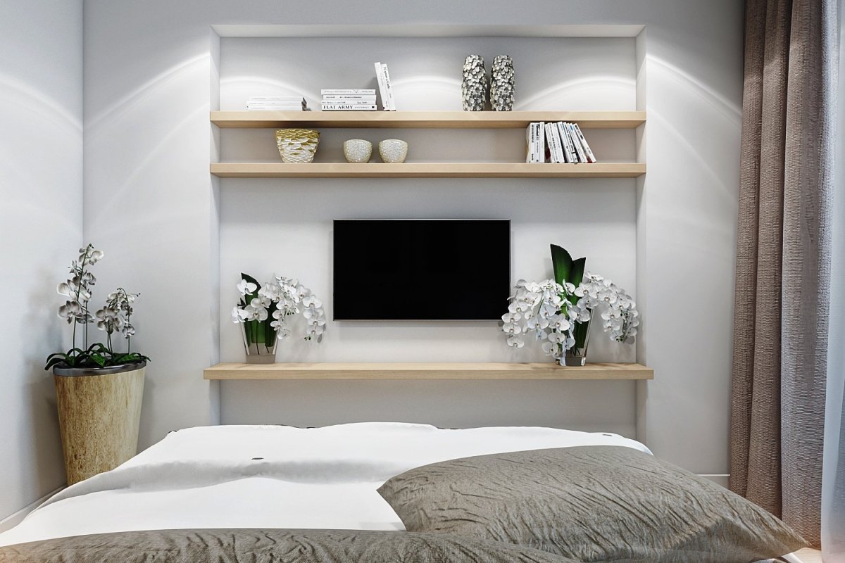 16. Телевизор на стене в спальне
