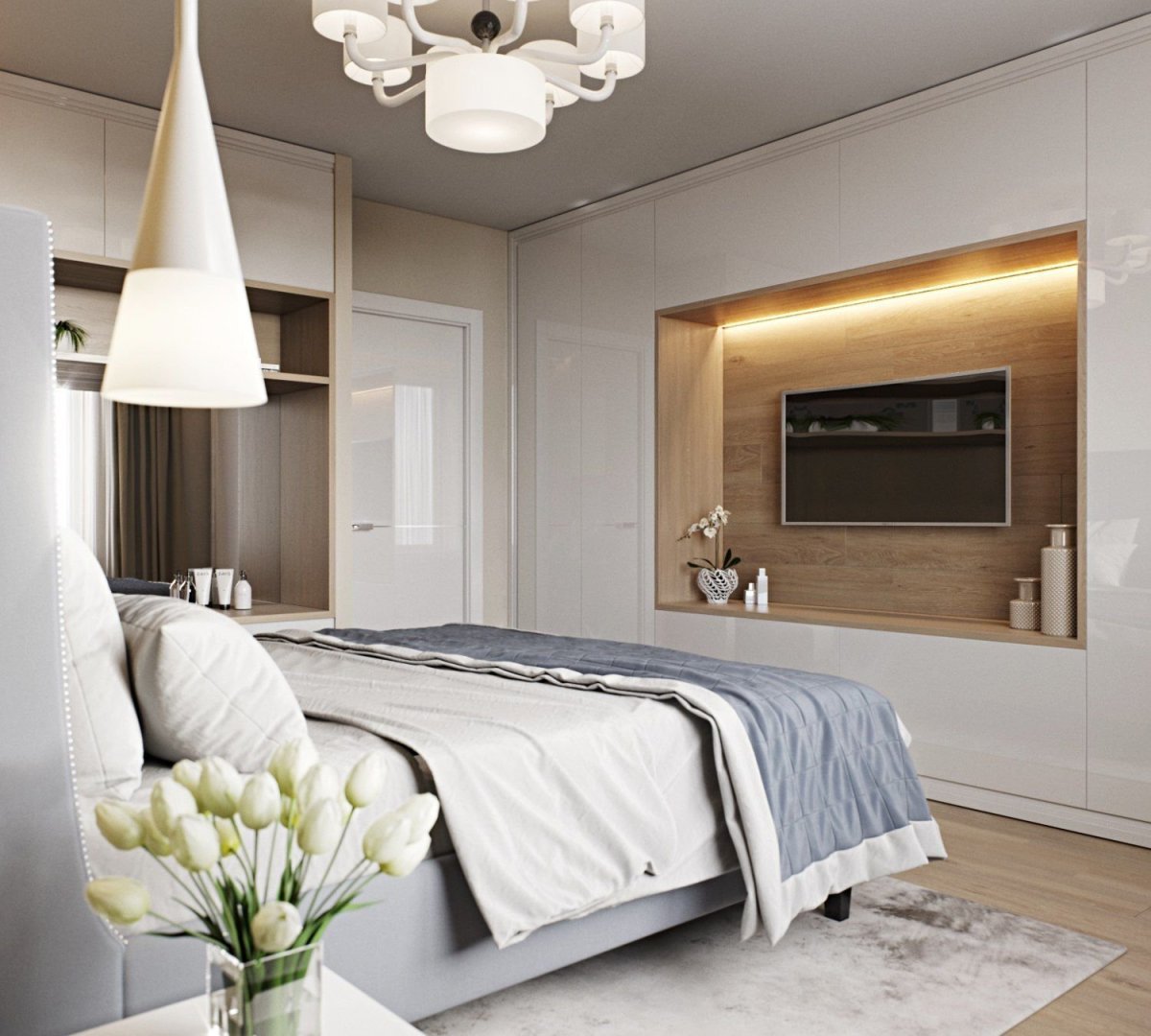 56. Современная спальня с телевизором