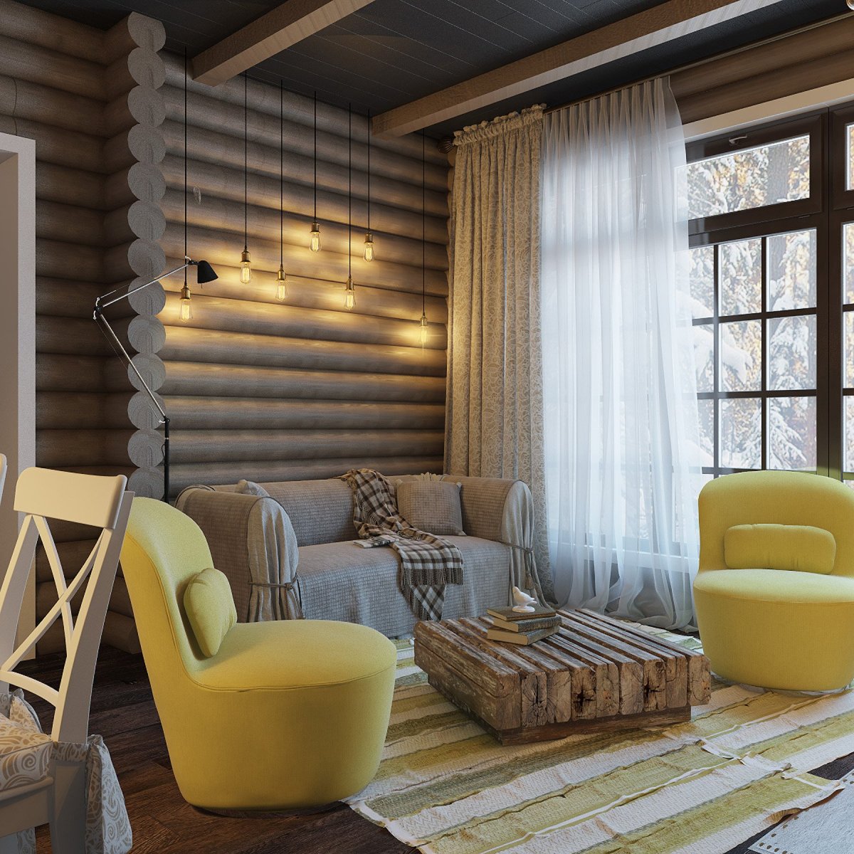 27. Дом из оцилиндрованного бревна интерьер Люкс
