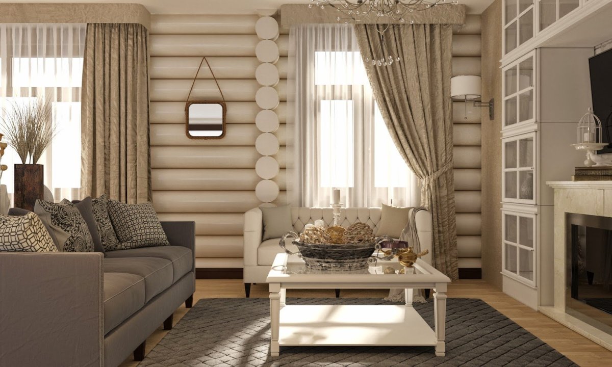Фото: Гостиная Прованс Кантри в бревенчатом