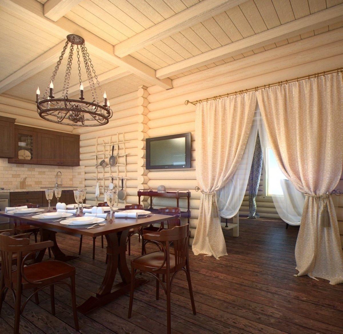 31. Интерьер загородного дома из бруса в стиле Кантри