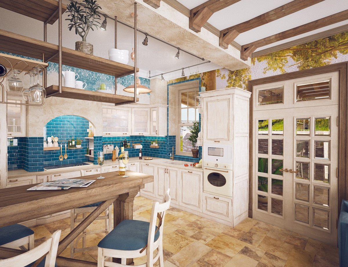 32. Интерьер кухни в стиле Кантри Прованс деревенский