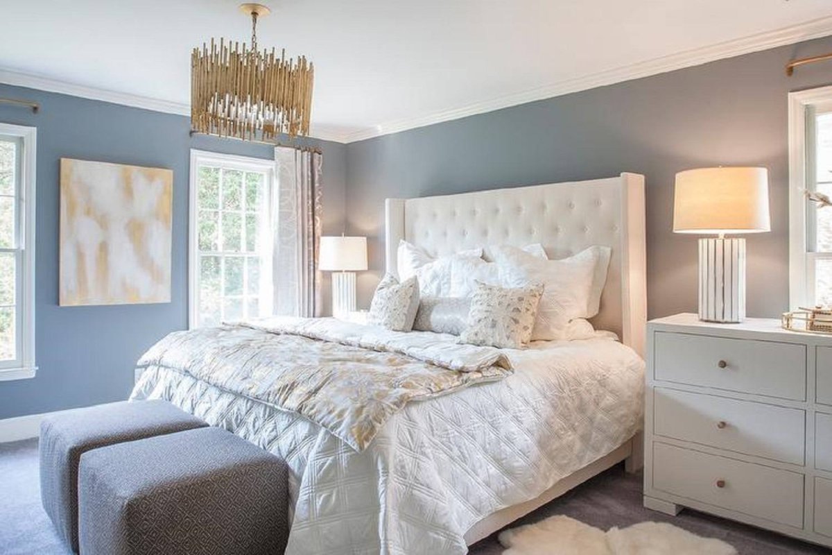 75. Серо-голубой цвет стен в интерьере спальни Пинтерест идеи