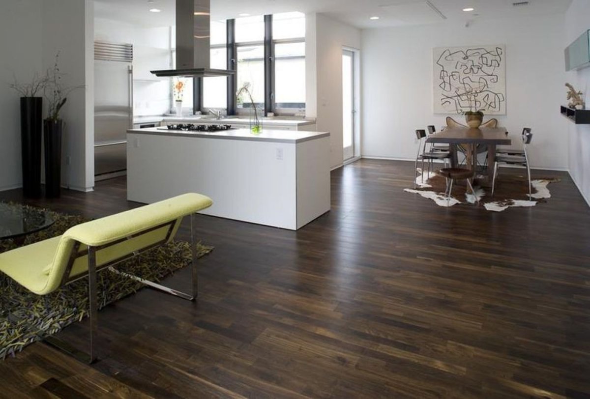 12. Ламинат в кухне гостиной