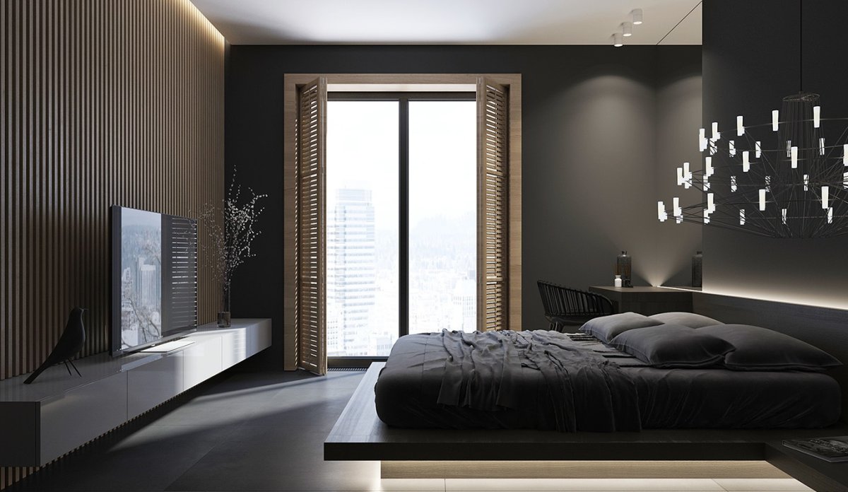 6. Интерьер спальни в современном стиле в темных тонах