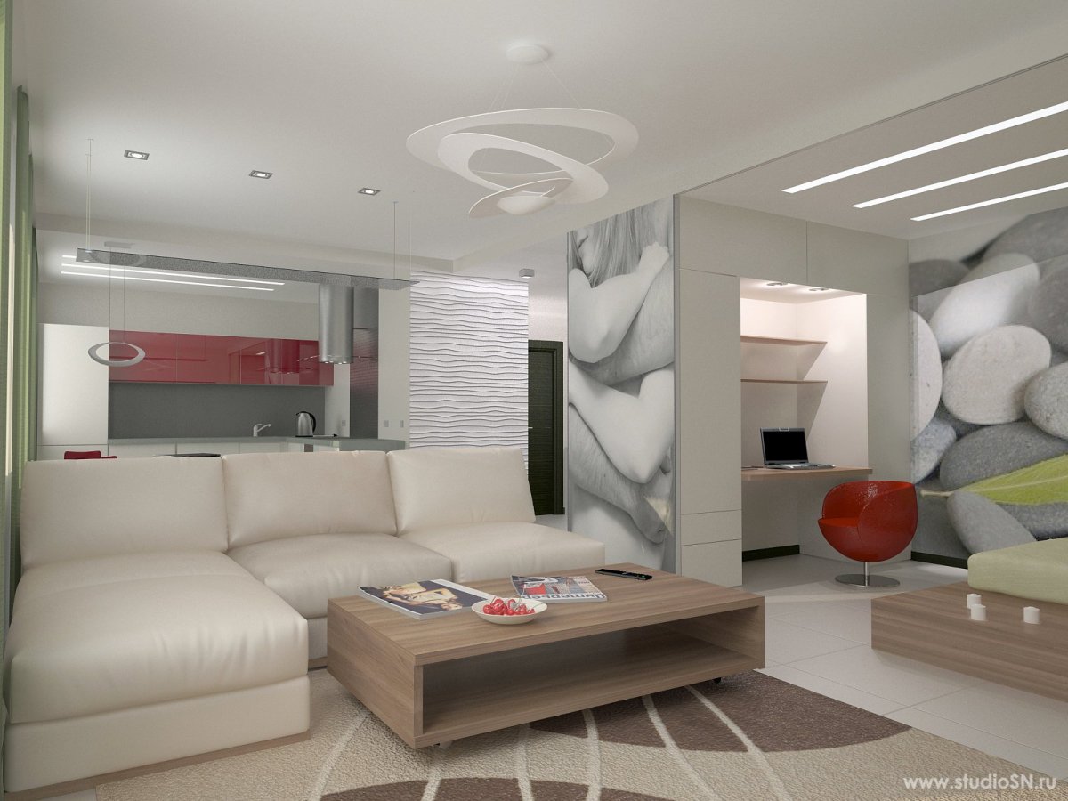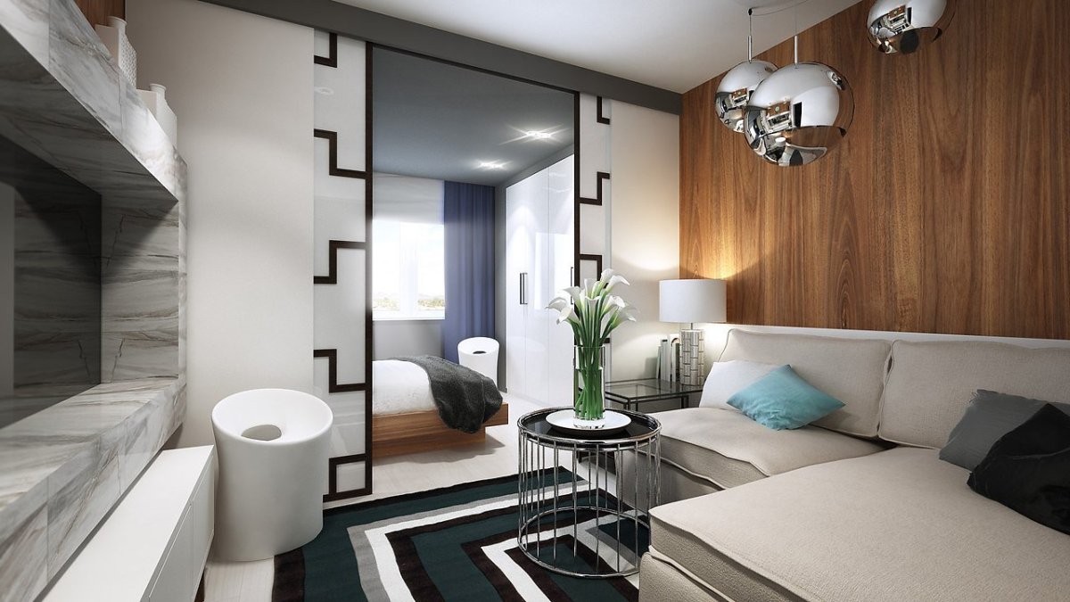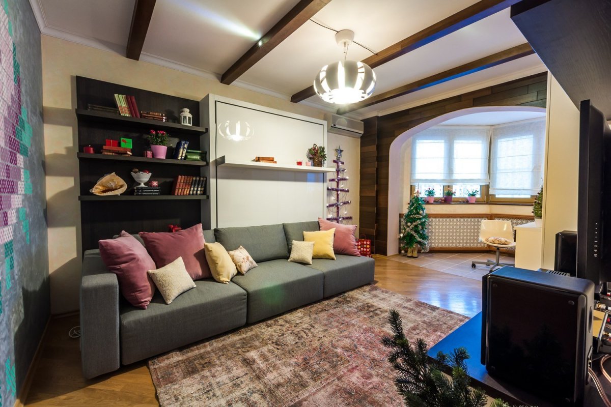 52. Дизайн спальни совместно с гостинной в современном стиле недорого