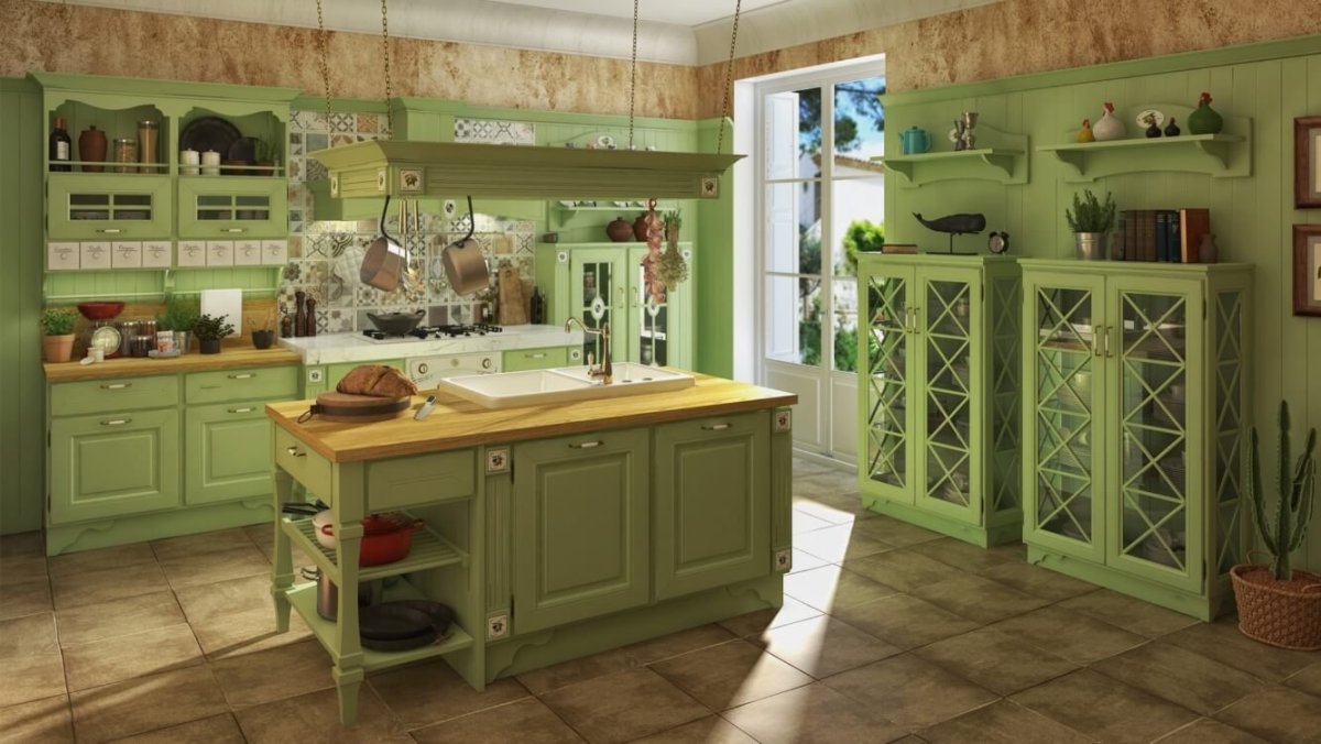 20. Кухня Кантри Прованс Неоклассика зеленая