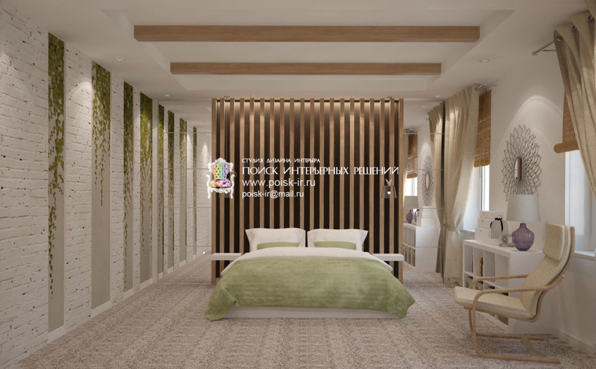 14. Спальня в современном стиле с рейками