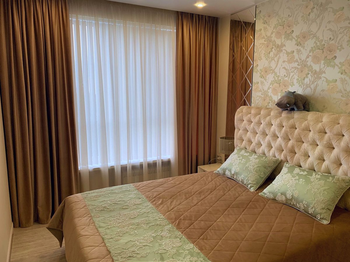 Фото: Лавандовые шторы в интерьере спальни
