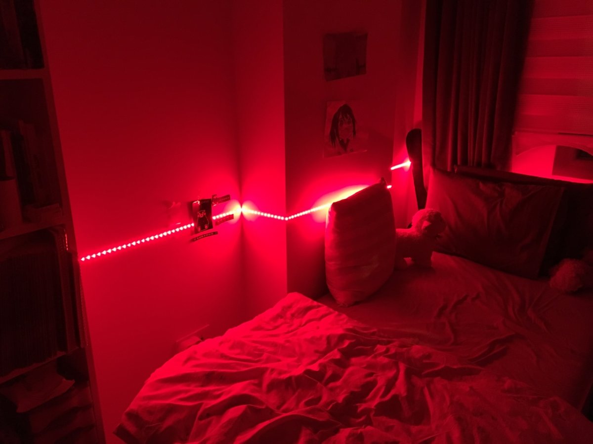 44. Красивые фото гостиной с приглушенным светом в красно белой эстетике