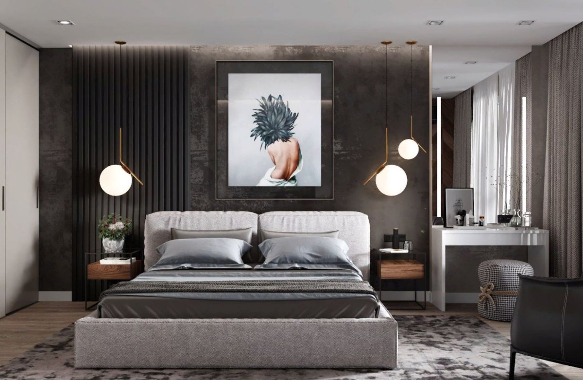 22. Спальня в стиле Контемпорари в брутальных тонах