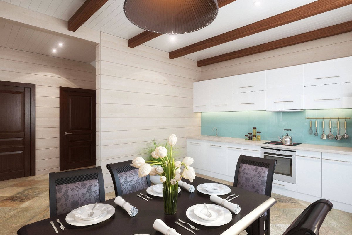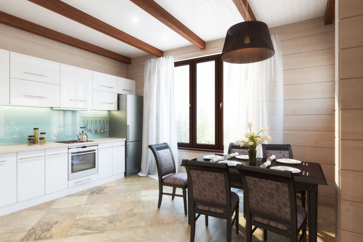 21. Интерьер кухни в доме из клееного бруса