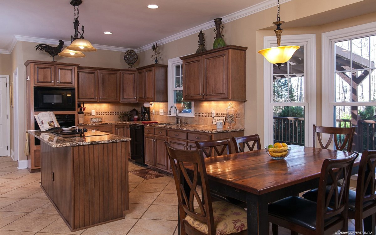 2. Обои по деревянную кухню