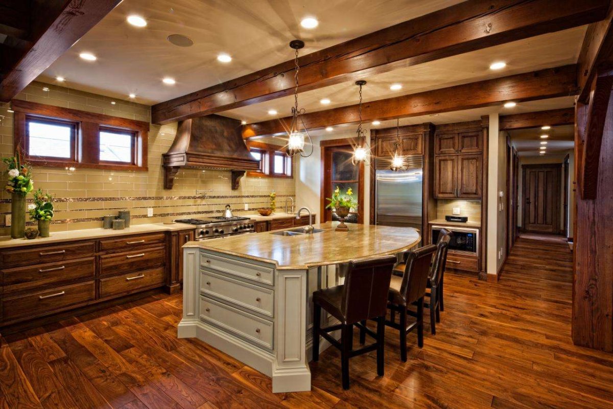 43. Кухня с балками на потолке