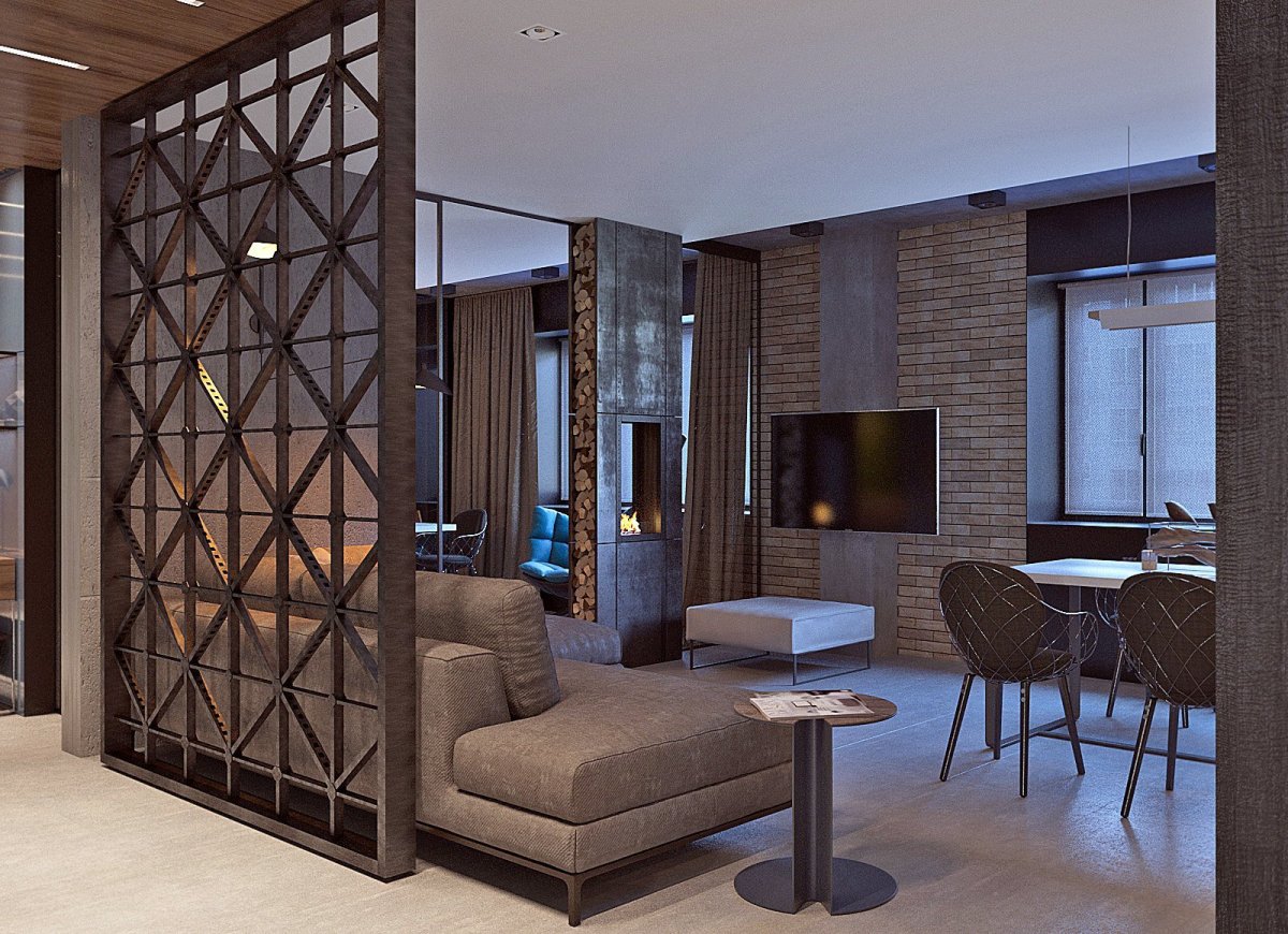39. Перегородка в гостиной для зонирования