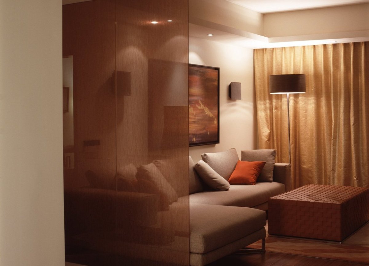 15. Перегородка в гостиной для зонирования стекло