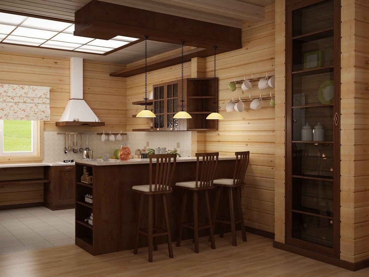 10. Интерьер кухни в деревянном доме