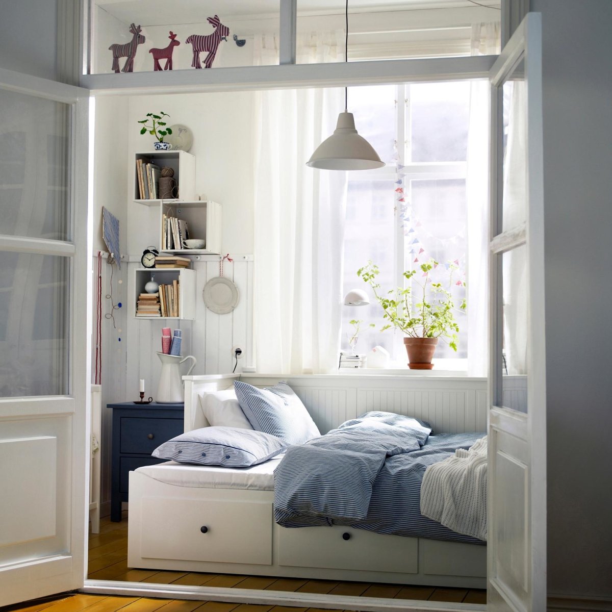 13. Маленькая спальня с белыми шторами икеа