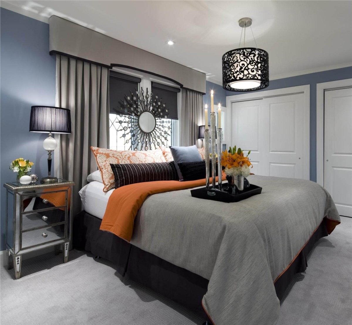 13. Серый и синий в интерьере спальни