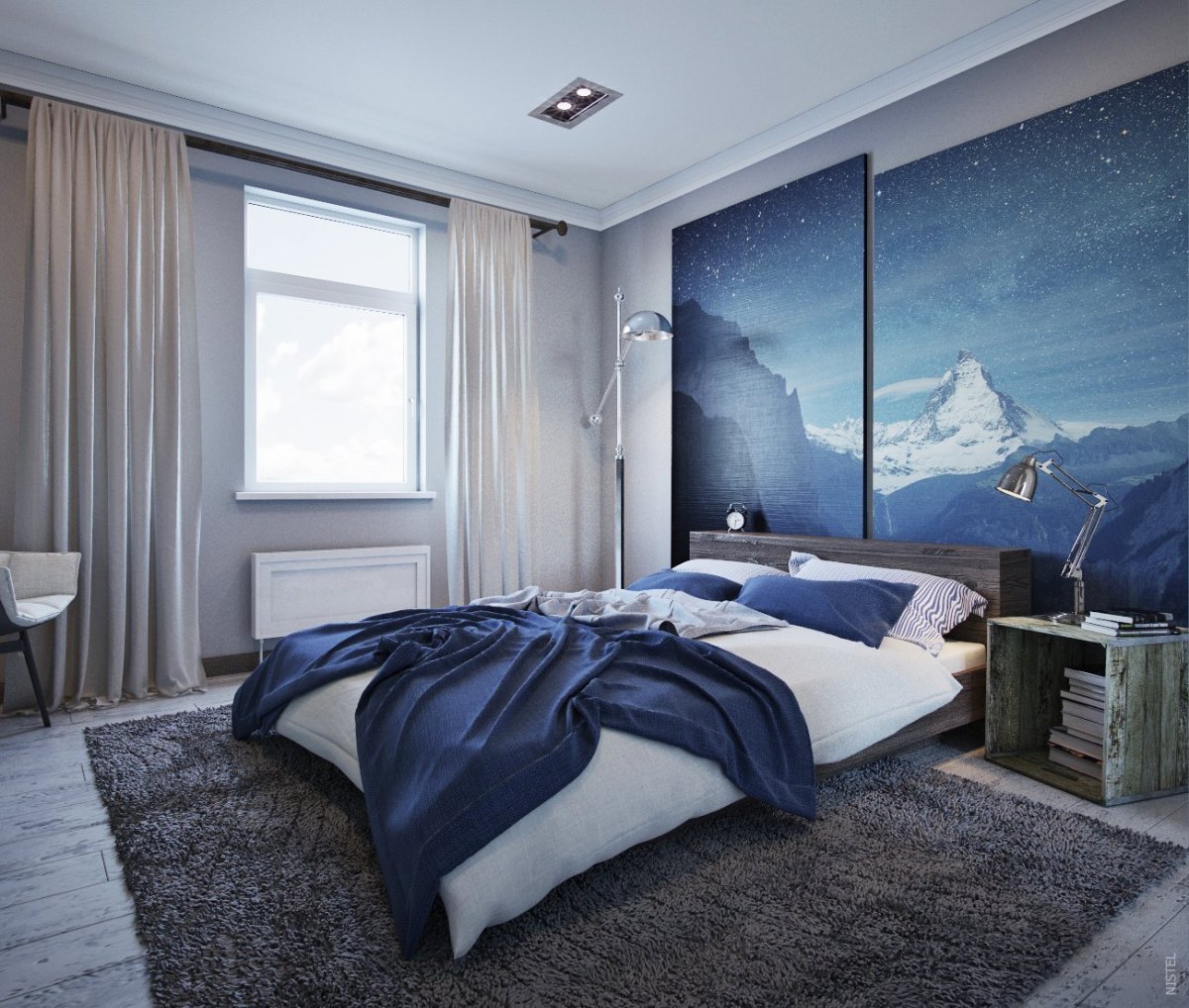 47. Спальня в сине серых тонах
