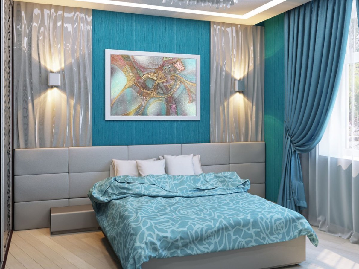 59. Бирюза в интерьере спальни