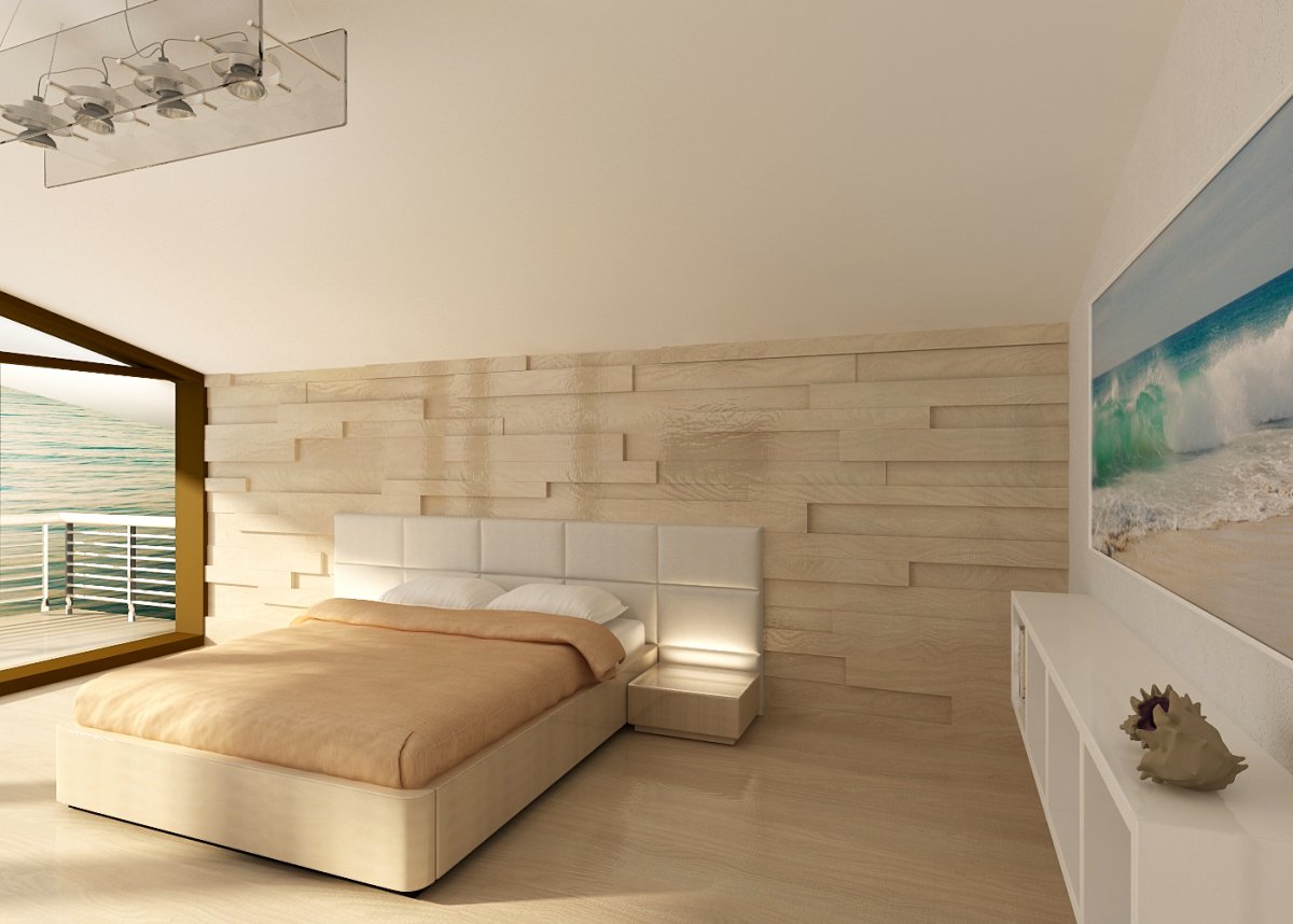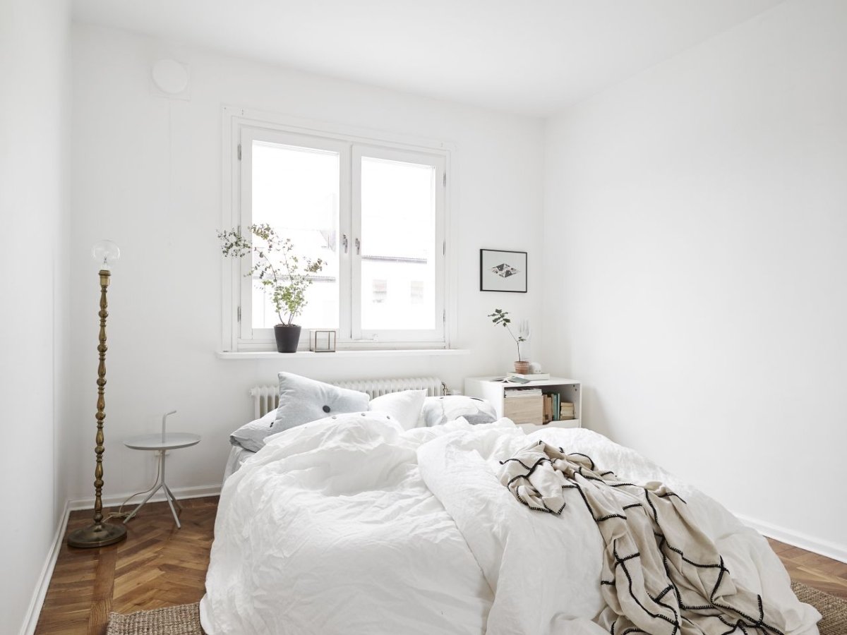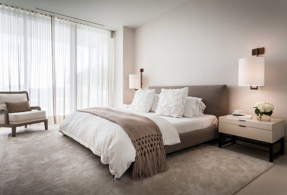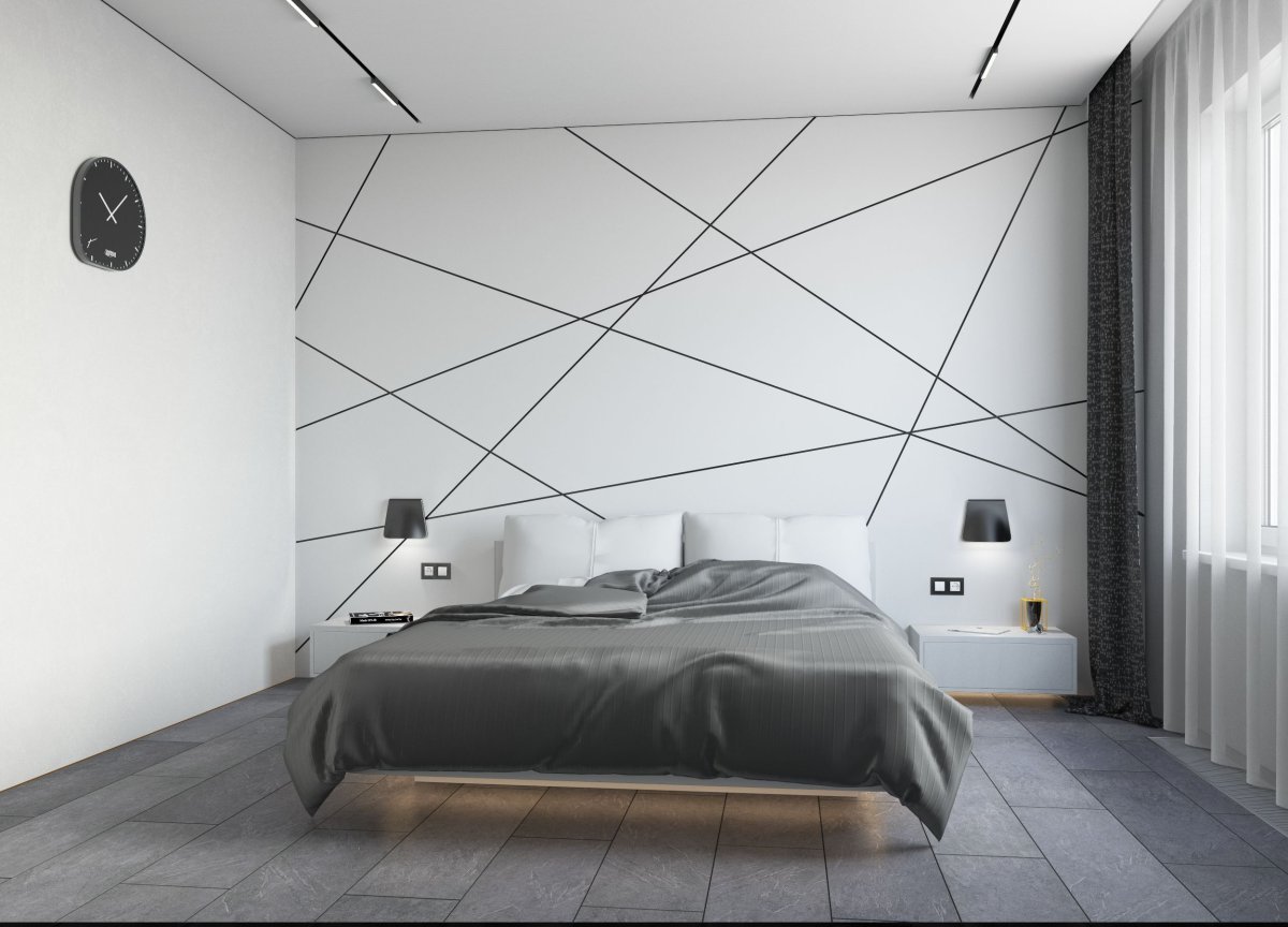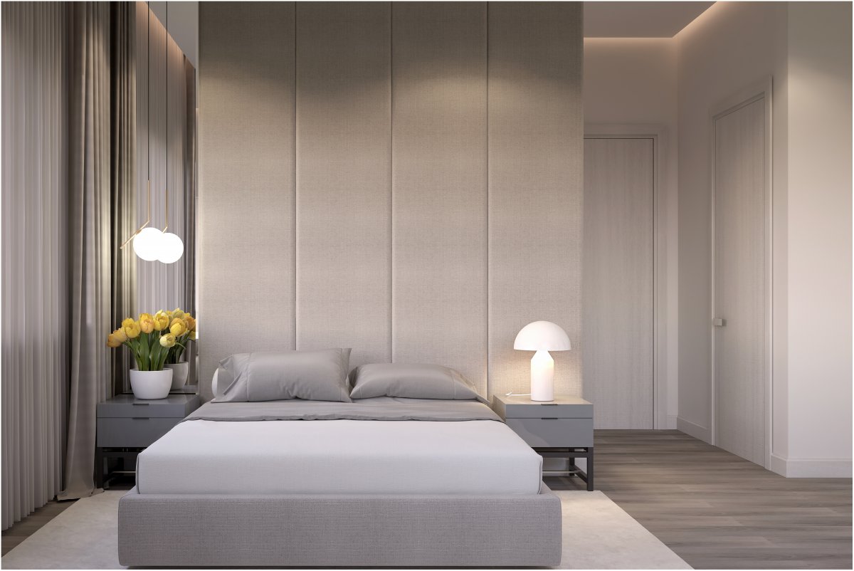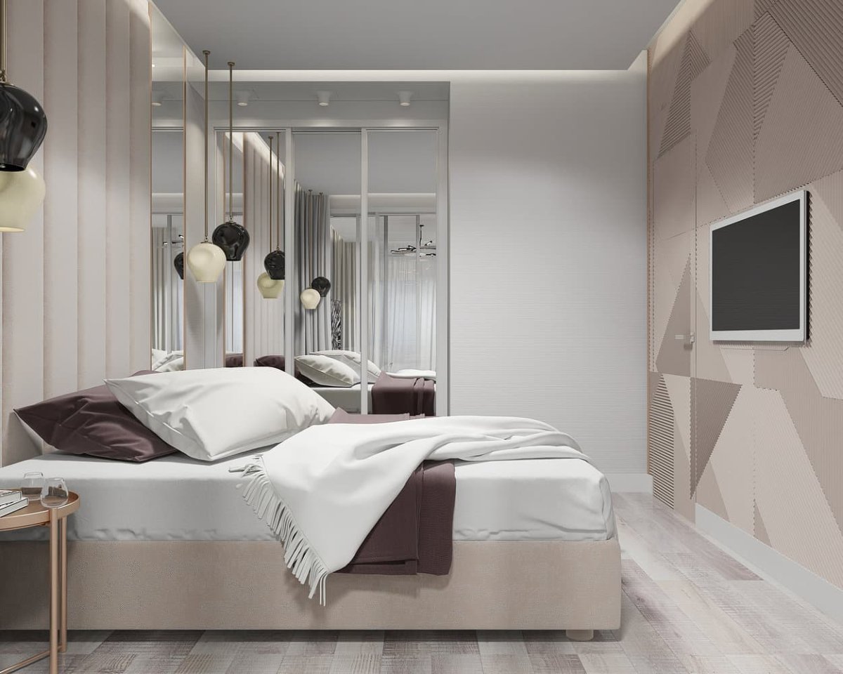 38. Спальня в светлых тонах с рабочим местом Минимализм
