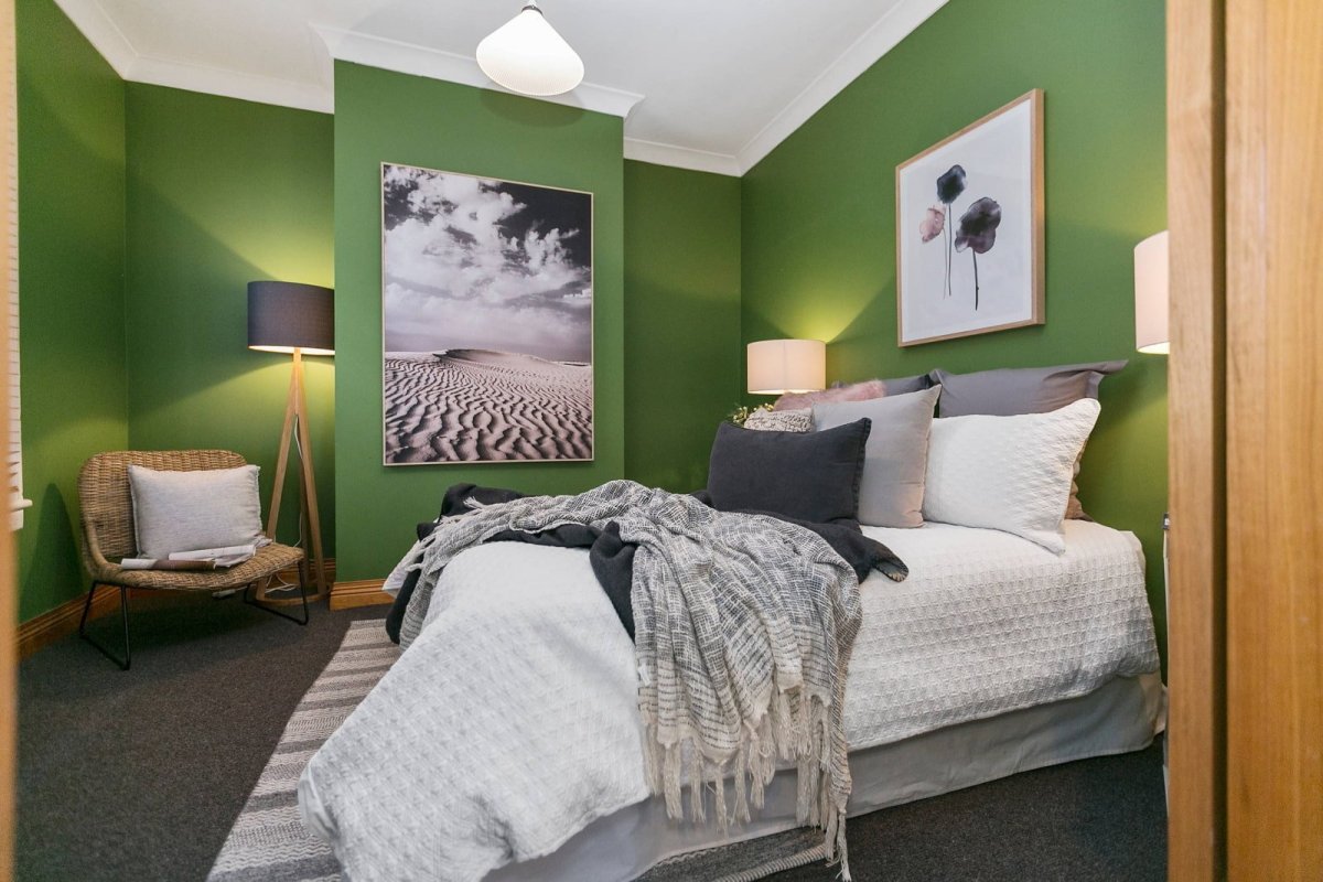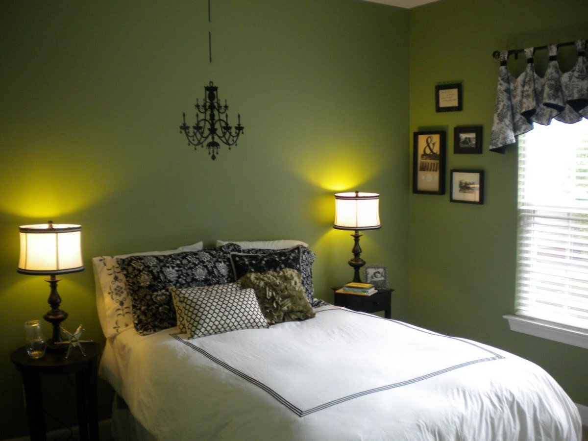 13. Зеленые стены в спальне