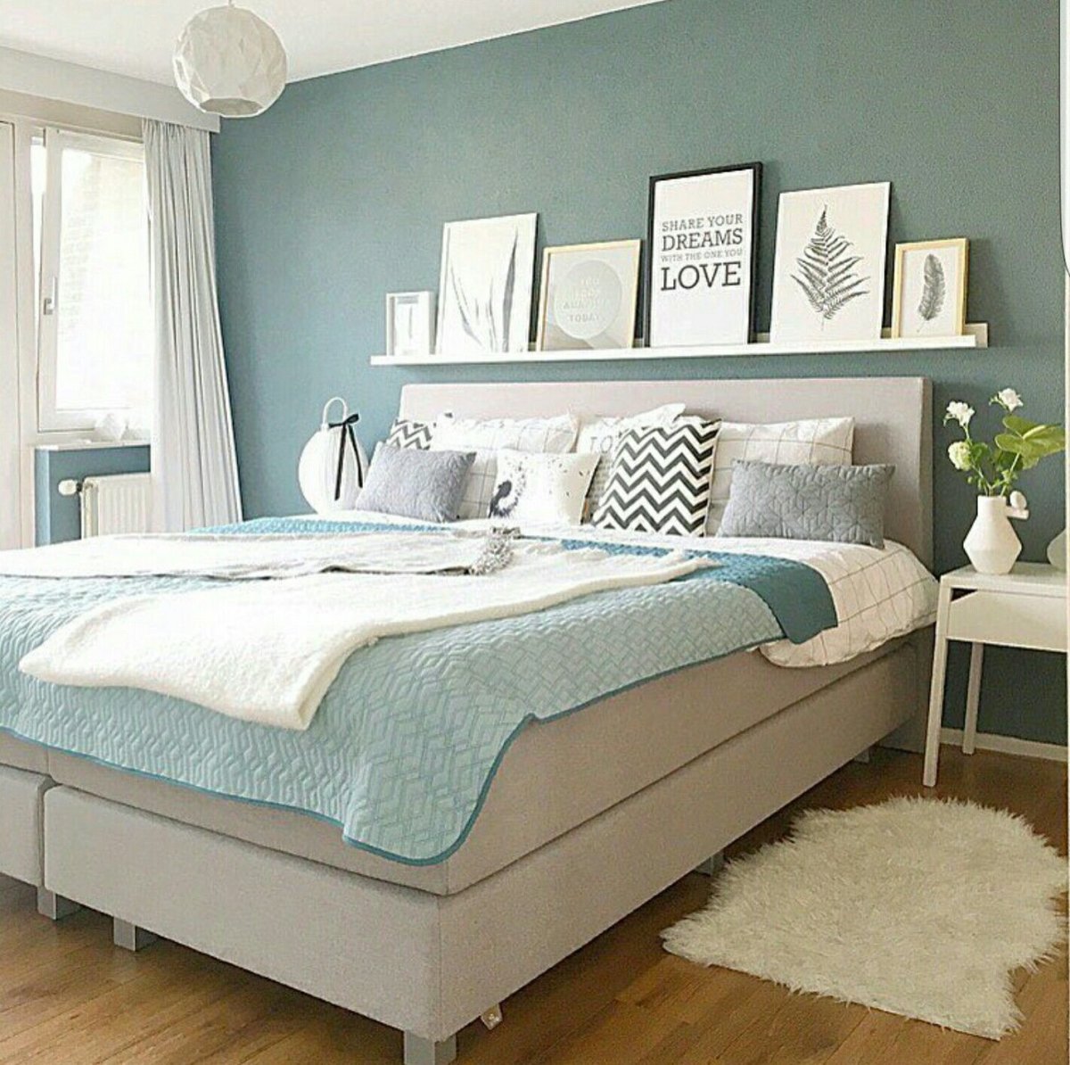 54. Серо-голубой цвет стен в интерьере спальни Пинтерест идеи